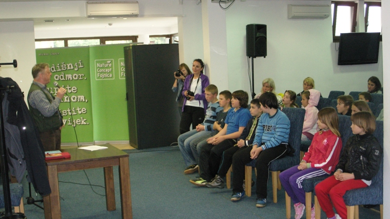 Tokom nastave smo čitali njegove knjige Črvive pesmi, Marela in Mihec gre prvič okrog sveta, a srednješkolci su upoznali Izbrane Rozine v akciji. Pjesnik nam je slikovito predstavio svoj rad, pa i svoju pjesmu koju je napisao još kao osnovnoškolac. Dok smo slušali pjesme Lepa Vida, Povodni mož, Ob Grauževem dnevu, Mleko, Lovec, Marela i druge mogli smo se uvjeriti da je odličan interpretator vlastitih riječi. Postavio nam je i više zagonetki, a na kraju smo zajedno upalili motore i ispalili raketu, koja svakoga može odvesti u svijet bajki. Andrej Rozman Roza spada među najizvornije i najsvestranije savremene stvaraoce u Sloveniji i drago nam je da smo njegov literarno-pozorišni nastup mogli vidjeti na susretima učenika dopunske nastave slovenačkog jezika i kulture.