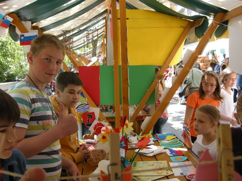 Osnovci iz Ljubljane i okoline su u petak, 9. maja, na Dan Evrope na Hribarjevom brdu uz Ljubljanicu predstavljali evropske države. Pridružili su im se i učenici dopunske nastave slovenačkog jezika iz Banjaluke, Slatine, Prijedora i Teslića, koji su predstavljali Slovenijo.
