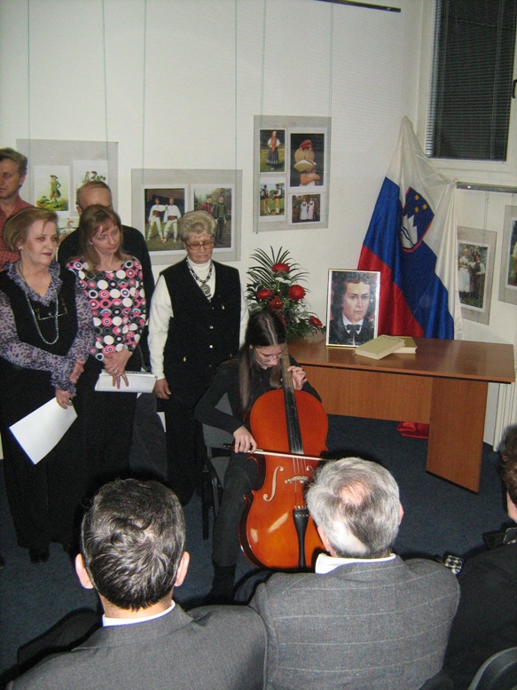 Bila je to prilika da se svim prisutnim na zanimljiv način predstavi Prešernov život. Zatim su učenici škole dodatne nastave slovenačkog jezika recitovali autorove najpoznatije pjesme, kao što su Dohtar i Soldaška. Pridružili su im se i ostali članovi udruženja, koji su takođe predstavili najpoznatije Prešernove stihove. Naši mladi muzičari su potom kulturni program uljepšali instrumentalnom izvedbom.