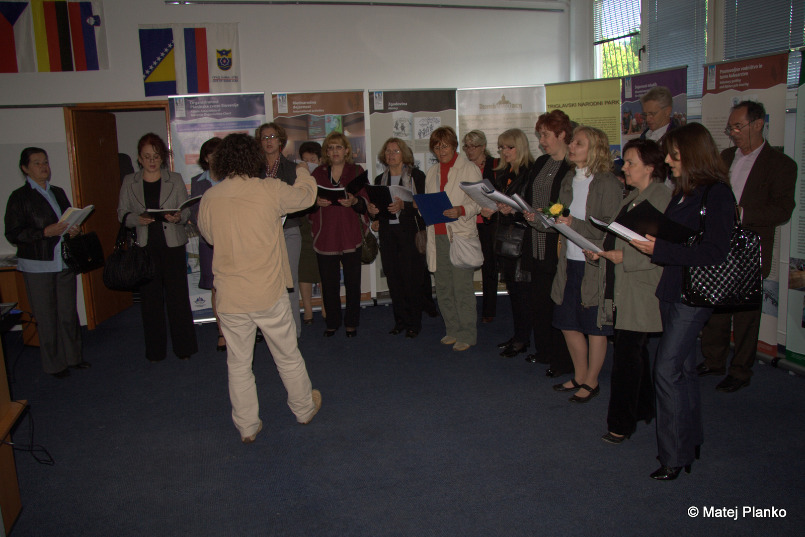 Posjetioci izložbe su u prijatnoj atmosferi uživali u programu Udruženja Slovenaca “Triglav” i učenika dopunske nastave slovenačkog jezika. Suština programa je bilo predstavljanje slovenačkih planina s Triglavom na čelu, kojeg u svom grbu imaju Slovenija ali i Udruženje Slovenaca u Banjaluci. Na početku programa se posjetiocima predstavio hor Udruženja Slovenaca “Davorin Jenko”, a nakon toga su nastupili učenici dopunske nastave slovenačkog jezika. Program su vodili mladi učenici Aleksandar Zrnić kao Kekec i Aleksandra Špehar kao suvoditelj. Pjesmom i riječju su na taj način učenici napravili uvod u izložbu, koja govori o planinarstvu u Sloveniji, a pored toga su posjetioci mogli pogledati i početak filma Sfinga, koji ih je oduševio.