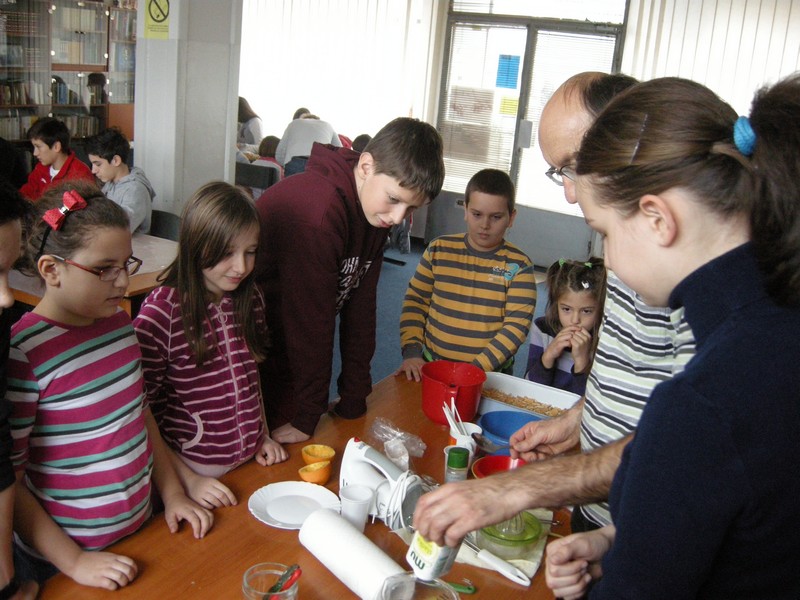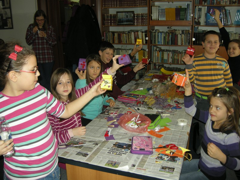 I u subotu, 12. decembra, su cijelo dopodne stvarali. Radionice su se održale u prostorima Kluba nacionalnih manjina, a vodili su ih Alenka, Ivana, Tamara, Barbara i Franci. Učenici su od jabuka, piškota i šlaga spremili ukusan slatkiš i odmah ga pojeli. Od papira su napravili kutijice u koje će staviti bombon ili mali poklon. Izradili su i kalendare za 2016. godinu i zvjezdice od papira kojima mogu ukrasiti stan. Decembarske radionice su već tradicionalne a svake godine napravimo nešto novo i tako dočaramo novogodišnji ambijent.