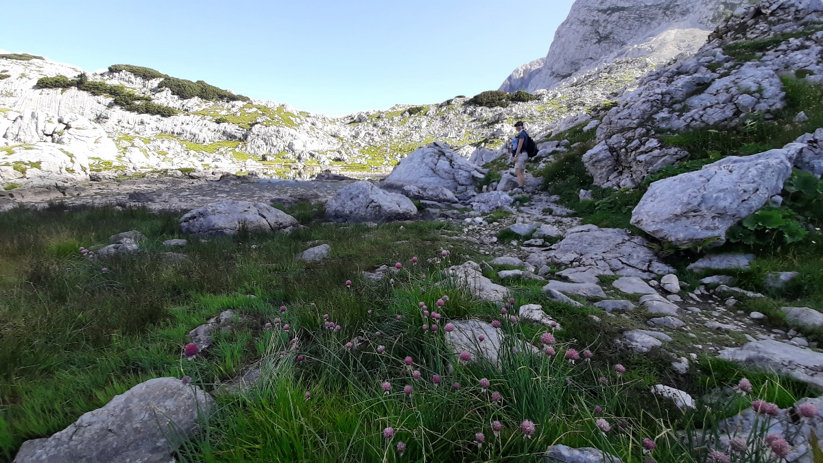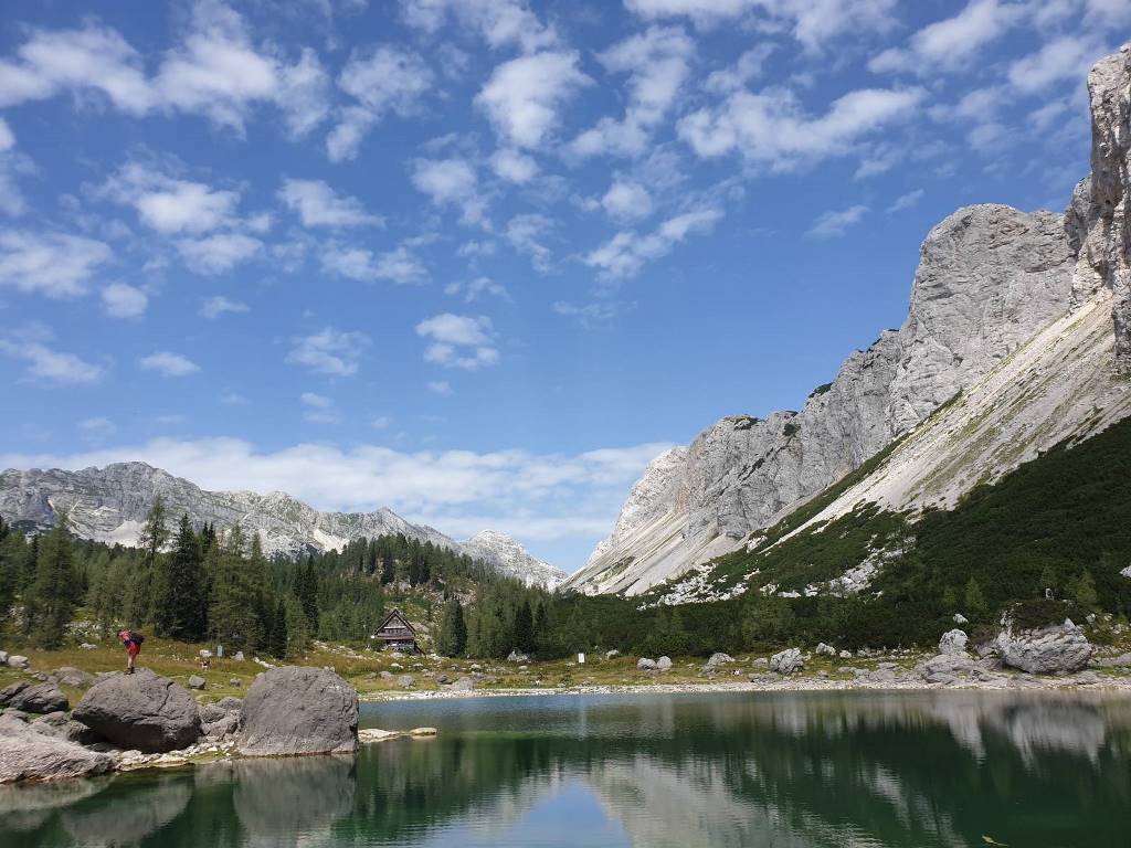 Iznajmili smo kombi, Ivan je bio vozač i već u dva sata, rano ujutro smo redom pokupili raspoložene putnike i krenuli prema granici. Sve je teklo besprijekorno, petak nije bilo gužve na putu. Prva kafa je bila kad smo ušli u Sloveniju i tu smo na parkingu i doručkovali. To je bez pretjerivanja, bila prava slavska trpeza. Počelo je, kako i dolikuje, sa rakijom. Izbor je bio šljiva, travarica, a Zdenka je dodala i drenju. Nema dalje. A onda kiflice Bernardine mame, Olgina slana, slatka pita, suhomesnate delicije, sir, domaći paradajz, paprika i kolač sa šljivama. Kad smo se lijepo okrijepili, nastavili smo put ka Bledu i Bohinju i planini Blato (1147 m). Na Planini Blato bila je ogromna gužva i jedva smo našli mjesto za parkiranje. Obukli smo gojzerice, uprtili teške rance na leđa i oko pola 10 krenuli uz brdo. Naravno prvo smo se slikali da ovjekovječimo trenutak početka uspona. Ranci su nas pritiskali, nije bilo lako, ali nismo se kolebali grabili smo uz brdo. Naprijed u avanturu. Vrijeme predivno, baš kako treba. Gledamo ponosne borove koji strše uvis, vrhove planina koji ih nadvisuju obasjane suncem i upijamo tu ljepotu. Noge idu same i za sat vremena stigosmo do Koče na planini pri jezeru (1453 m). Kad smo izlazeći iz šume ugledali dom sav u cvijeću, obasjan suncem, a oko njega krave pasu, morali smo zastati da se divimo toj nesvakidašnjoj ljepoti. Bili smo sretni što smo savladali prvu etapu na našem putu, krenuli smo da sjednemo da se odmorimo popijemo kafu, a kad smo ugledali jezero zelene boje okruženo visokim borovima, preplavio nas je osjećaj sreće. Nismo mogli odvojiti pogled od jezera, odmarali smo se gledajući njegovu smaragdnu boju. Nakon kratkog predaha, morali smo krenuti dalje. Na pola sata hoda bila je planina Dedno polje. To su bili katuni smješteni u jednoj sunčanoj dolini podno planinskih vrhova. Tu ste mogli da naručite kiselo mlijeko, žgance, štruklje, sir i pastirsku rakiju. Pošto smo kratko hodali, nismo svraćali, nastavili smo put prema Ovčariji. Bili smo otprilike na pola puta. Do Koče pri sedmerih jezeri (1685 m) išli smo preko Prodova gdje je krajolik bio bajkovit. Vidjeli su se vrhovi okolnih planina i u šumi smo vidjeli dom na Komni. Staza je bila kamenita strma i morali smo biti jako oprezni. Do našeg cilja smo stigli za dva i po sata. Prvo smo ugledali Dvojno jezero i nismo mogli odoljeti, uputili smo se prema jezeru, odmorili smo se i sa uživanjem stavili u vodu umorne noge. U jezeru su se ogledali vrhovi Tičarice. Pored jezera je bio smješten dom, oko kojeg vrvilo kao u košnici, od planinara. Već malo umorni, nešto smo pojeli, dogovorili se da ujutro krećemo na hodanje u pola 7 i otišli da spavamo puni utisaka.