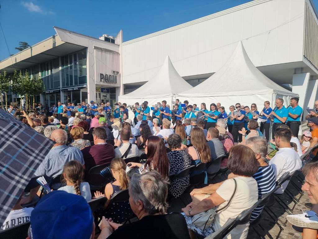 Nakon povratka na Svetu Goru i ručka, ponovo smo se vratili u Novu Goricu gdje je bila postavljena bina za nastupe u okviru manifestacije Dobrodošli doma. U 16h je počeo program koji je otvorio orkestar Slovenaca iz Kaknja, nastupili su i Slovenci iz Sarajeva a zatim i naš dječiji folklor. Iako je bio veoma topao dan, osmijeh sa lica naših mladih folkloraša nije silazio. Nakon nastupa, obišli smo i štandove na kojima su bili predstavljeni gosti iz različitih zemalja kao i Kancelarija za Slovence po svijetu. Za svakoga je bilo po nešto, hrane i pića, slatkiša, oslikavanja lica i fotografisanja uz simpatične rekvizite. U međuvremenu je naš hor imao jedan nastup u Novoj Gorici kao dio sedmice kulture, a zatim i drugi u Kromberku, na proslavi na kojoj je prisustvovao i predsjednik Vlade Republike Slovenije g. Robert Golob i sa kojim se predsjednik Udruženja Triglav imao priliku sastati.