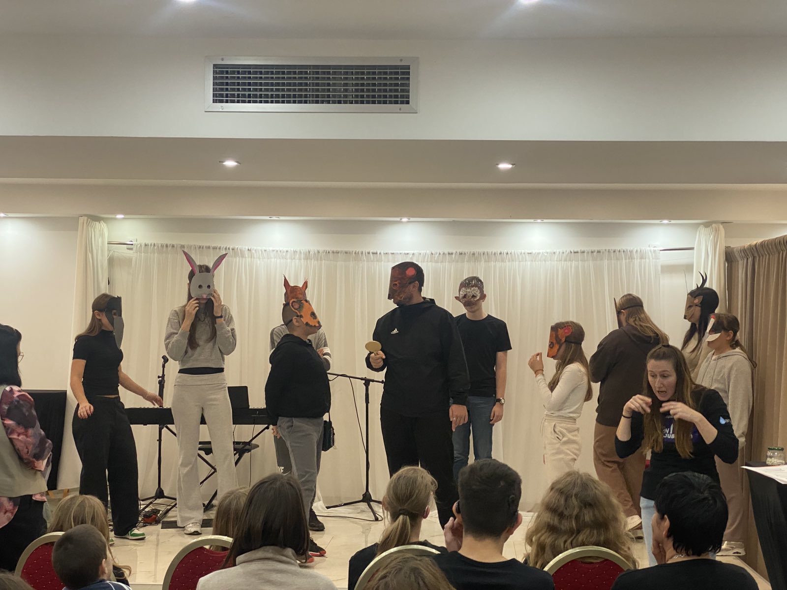 Za nastup na festivalu, na dodatnoj nastavi napravili smo maske 10 šumskih životinja i sa njima nastupili u kratkoj predstavi adaptiranoj prema poznatoj bajci Grigora Viteza, Ogledalce.