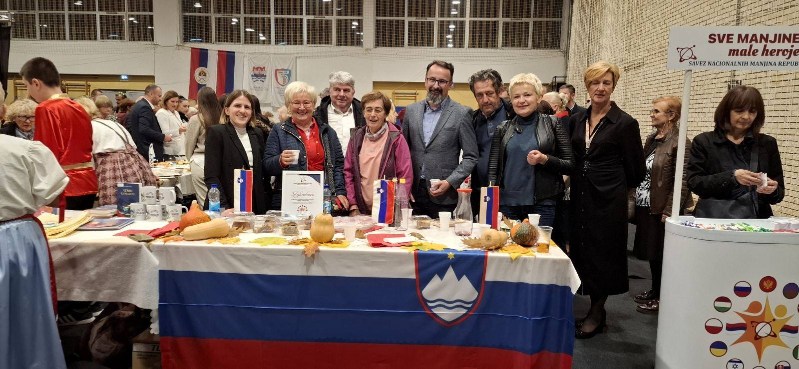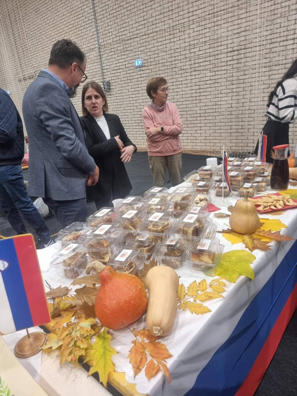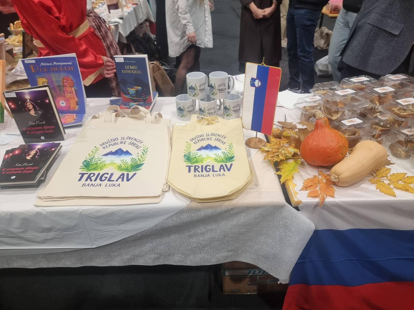 Štand slovenačke manjine krasile su prepoznatljive slovenačke slastice – prekmurska gibanica i orahova štrudla, koje su, zahvaljujući kulinarskom umijeću vrijednih članica Ljiljane Memon i Olge Delić, rasprodane još prije kraja programa. Posebnu pažnju privukao je i promotivni materijal našeg Udruženja – šolje za čaj, platnene i eko cegere sa simbolom i natpisom Udruženja „Triglav“, koje je za ovu priliku dizajnirao naš Luka Babić.