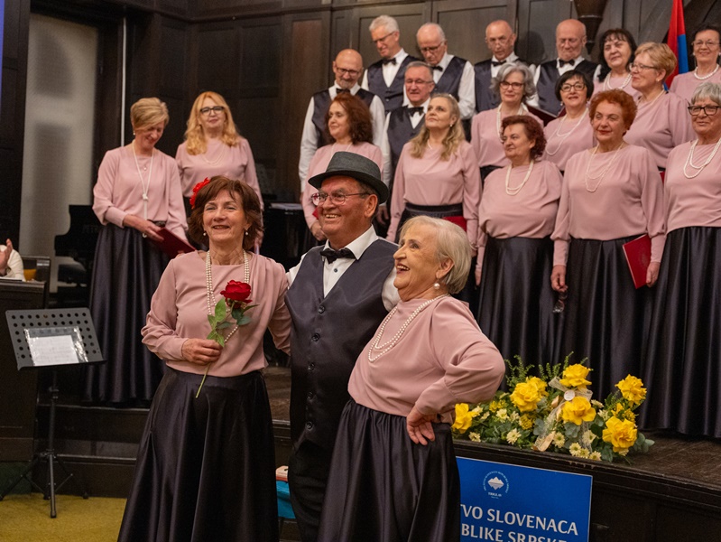 Hor je završio svoj nastup pjesmom Ota Pestnera, „Ljubim te, Slovenija“, sa horom su pjevali i svi prisutni, a neki su i zaplesali. Ova predivna večer ispunjena emocijama, lijepom slovenskom pjesmom i ponosom što smo uspjeli u svojoj namjeri da vrlo uspješno obilježimo naš srebrni jubilej, ovjekovječili smo zajedničkim fotografisanjem.