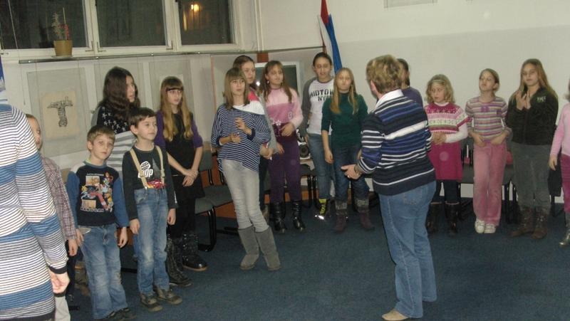 Tako smo već u petak, 18.1. i subotu, 19.1.2013 izveli PRVU PLESNU RADIONICU, koja se održala u prostorijama Udruženja u Banjoj Luci. Okupilo se 35 djevojčica i dječaka, koji su spremni sarađivati u grupi i upoznati se sa slovenačkom narodnom tradicijom. Da bi rad bio lakši iz Novog mesta su nam se pridružili aktivni članovi OFS: Ana, Anže i Gašper.