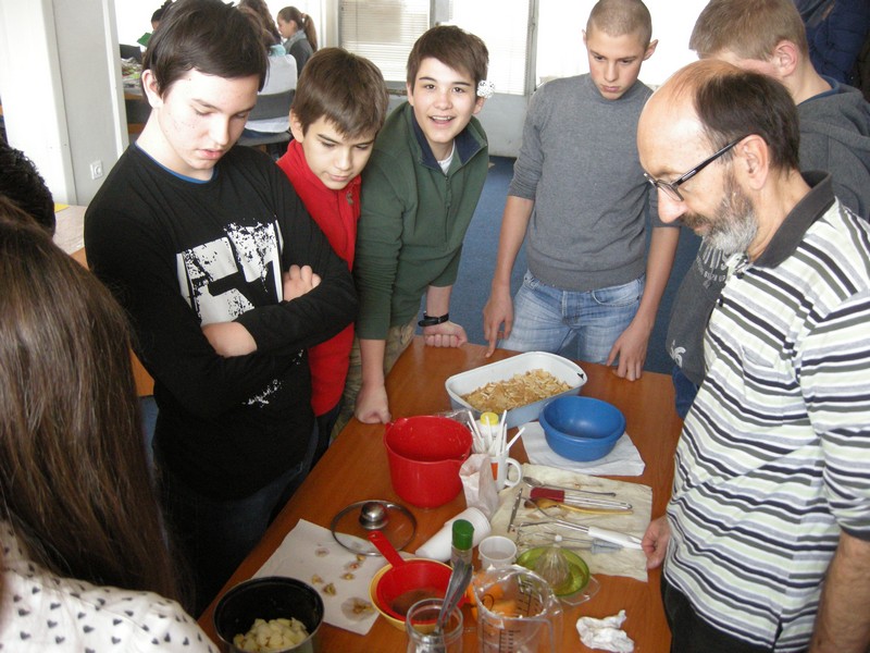 I u subotu, 12. decembra, su cijelo dopodne stvarali. Radionice su se održale u prostorima Kluba nacionalnih manjina, a vodili su ih Alenka, Ivana, Tamara, Barbara i Franci. Učenici su od jabuka, piškota i šlaga spremili ukusan slatkiš i odmah ga pojeli. Od papira su napravili kutijice u koje će staviti bombon ili mali poklon. Izradili su i kalendare za 2016. godinu i zvjezdice od papira kojima mogu ukrasiti stan. Decembarske radionice su već tradicionalne a svake godine napravimo nešto novo i tako dočaramo novogodišnji ambijent.