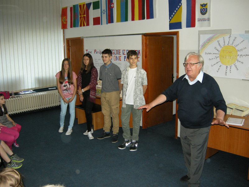 Gosti zaključne priredbe su bili slovenački pisac Tone Partljič i direktorica Biblioteke Antona Tomaža Linharta Božena Kolman Finžgar. Tone Partljič je odličan pripovjedač, zato su obe večeri koje je proveo sa nama, bile pune zanimljivih priča i humora. Svake godine vidimo da posjete stvaralaca ostavljaju trag i sigurni smo da će i ove godine biti tako. Djeca su uživala u slušanju, a najzabavnije je bilo kada su mu se pridružili u pozorišnim improvizacijama. Učenici su dobili potvrde i pohvale, a oni, koji su vrijedno čitali, su dobili i knjižne nagrade. Najviše knjiga je pročitala učenica Aleksandra Špehar, zato joj je Božena Kolman Finžgar dala nagradu za učestvovanje u projektu Biblioteka – vasiona blaga. Aleksandra Špehar, Ana Cucek i Nikša Perušić u ovoj školskoj godini nisu niti jednom izostali sa nastave, pa su zato dobili i posebne nagrade.