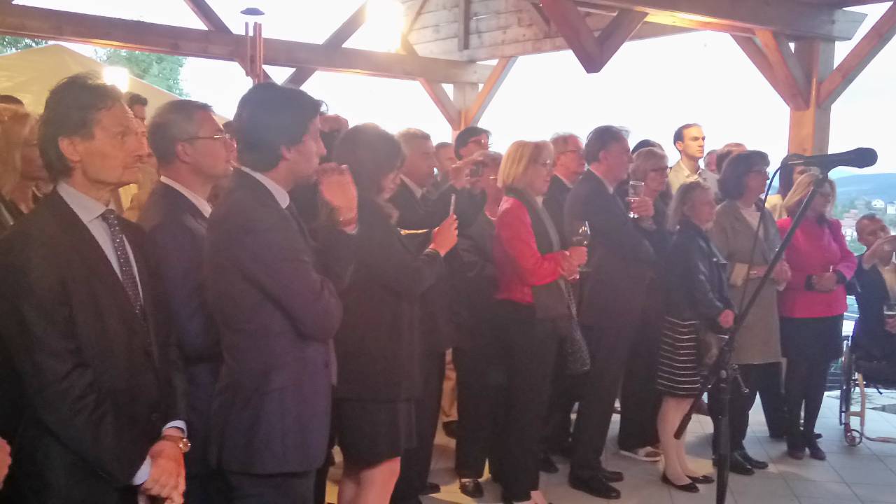 U prelijepom ambijentu vrta rezidencije se okupilo oko 400 gostiju. Među pozvanima su bili vodeći predstavnici diplomatskog kora BiH, predstavnici međunarodne zajednice, vojni diplomatski kor, predstavnici slovenačkih preduzeća u BiH, privrednici, predstavnici slovenačkih udruženja u BiH, eminentni kulturni radnici i prijatelji Slovenaca. Goste je pozdravila NJ.E. Zorica Bukinac. Počasna gošća prijema je bila slovenačka članica EP Tatjana Fajon, koja je kratkim govorom pozdravila sve prisutne.