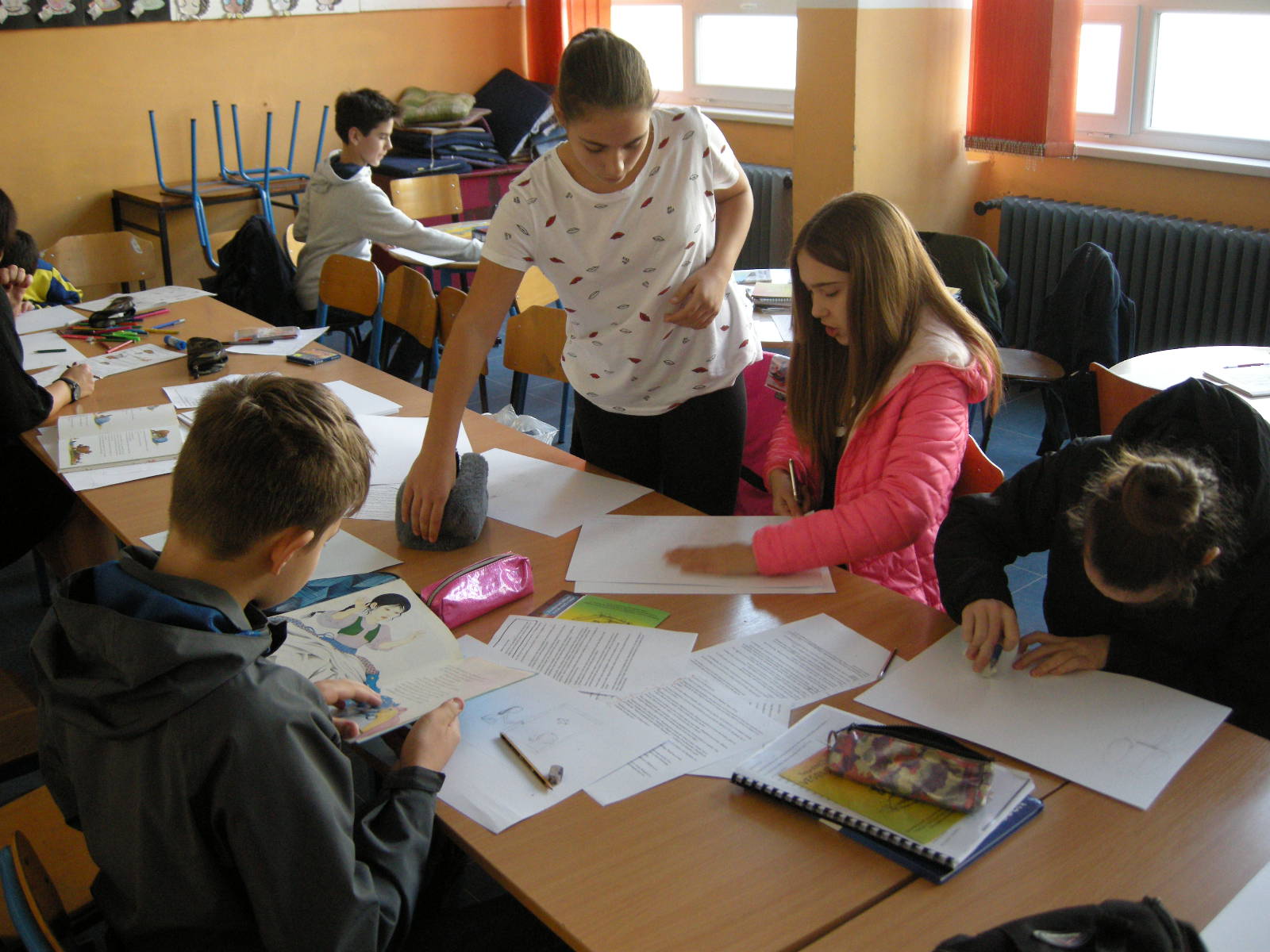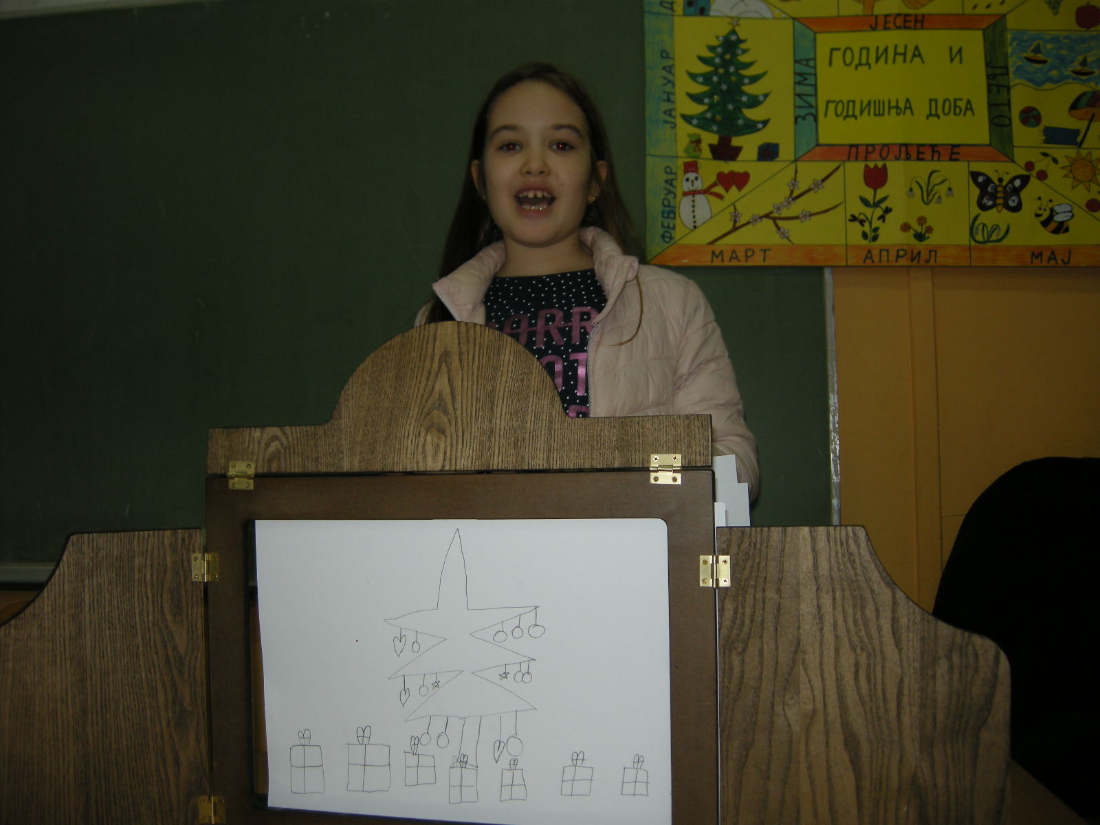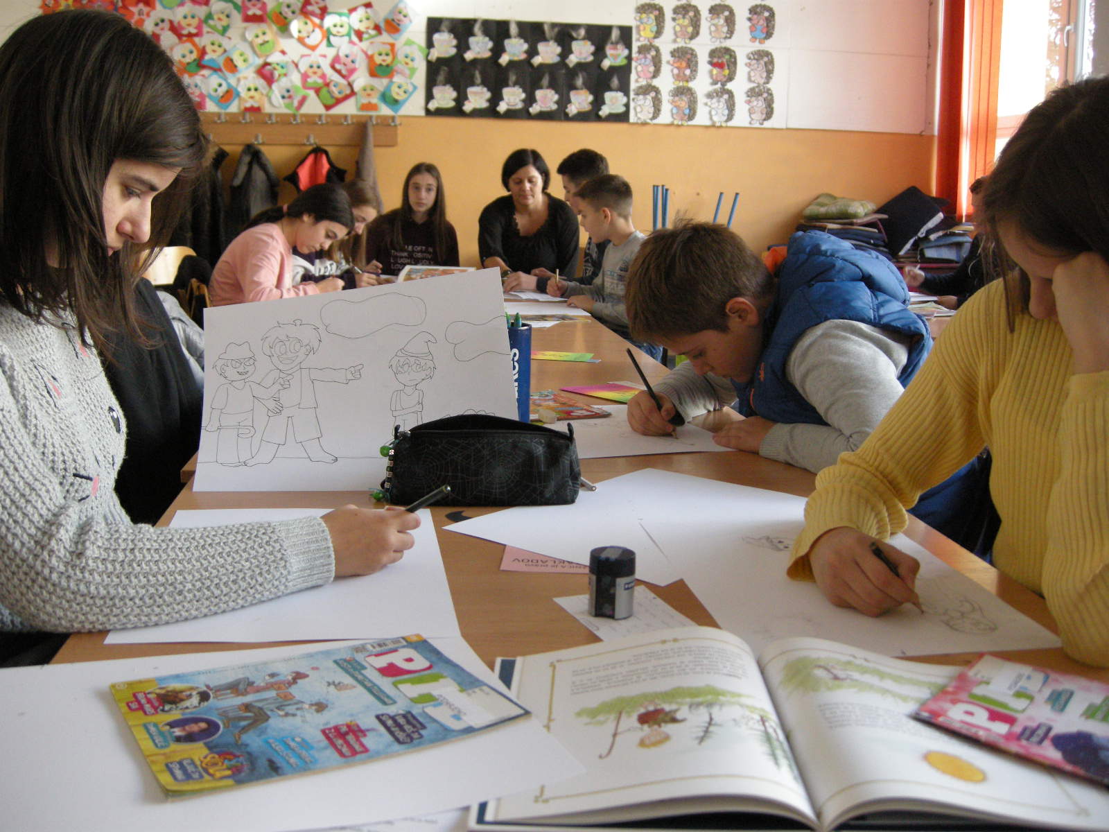Katja Bevk i Božena Kolman Finžgar iz biblioteke Antona Tomaža Linharta Radovljića donijeli su butaj u Banjaluku i u subotu, 23. novembra, tri grupe učenika oprobali su se u kreiranju slika za pripovijedanje. Odabrali smo poznate bajke: onu o rukavici koju je izgubio Djed Mraz a u nju se naselile životinje, o Djedu Mrazu, koji se zaglavio u dimnjaku, o krojačici i njenim čarobnim makazama, o Zlatorogu – jarcu sa zlatnim rogovima koji je besmrtan, priču o Petru Klepecu i legendu Bledskog jezera. Najmlađi su crtali prizore pjesama koje govore o zimskim i novogodišnjim običajima. Svi učenici pokazali su puno kreativnosti i upornosti. Neki su se već testirali u pripovijedanju uz slike, drugi će još uvek vježbati pripovijedanje priča a svoje slike će morati nacrtati. Oni će u subotu, 14. decembra, nastupiti na događaju na koji se pripremamo kada dođe Djed Mraz.