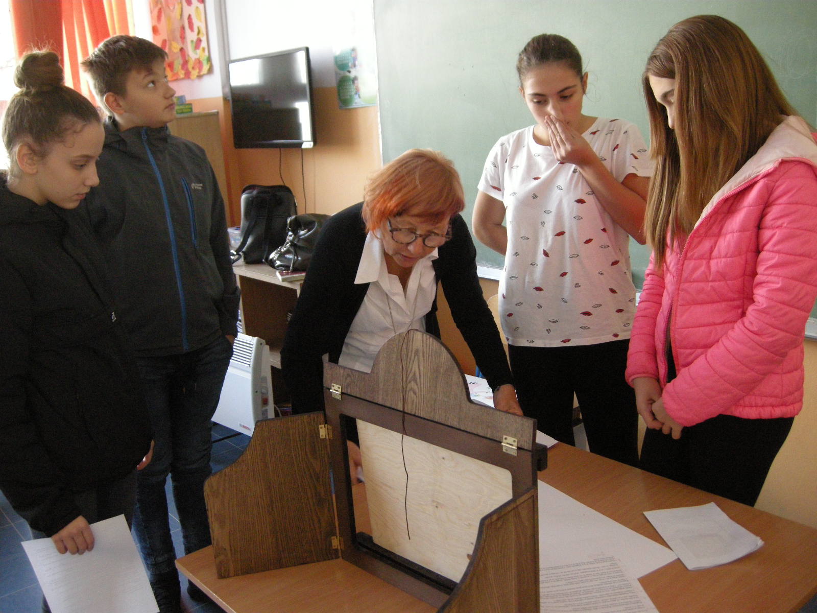 Kamišibaj radionica bila je dio projekta Biblioteka – vasiona blaga. Na početku nas je Katja Bevk upoznala s ovom vrstom pripovijedanja, ispričala nam je njemačku narodnu bajku Mamka Bršljanka. Bibliotekarke iz biblioteke Antona Tomaža Linharta iz Radovljice dolaze u Banjaluku već šest godina i uvijek pripreme nešto zanimljivo. Uvodni jesenji susret namijenjen je svake godine za kreativne radionice i poticaje za naše učenike da pročitaju što više. Na kraju školske godine dodjeljuju nagrade najboljim čitaocaima, donoseći knjige za čitanje za sve tokom ljeta. Kontakt s pisanom riječju vrlo je važan za one koji ne žive u okruženju u kojem bi se svakodnevno govorio slovenački, pa nam je drago što sarađujemo s bibliotekom Antona Tomaža Linharta iz Radovljice. Radionicom kamišibaj potaknuli smo učenike na pripovijedanje i izražavanje svoje kreativnosti prilikom crtanja. Originalni proizvodi potvrđuju da su učenici iz Banjaluke, Slatine i Teslića uživali u radu. Sada se već vesele da će svoje proizvode predstaviti na novogodišnjoj priredbi.