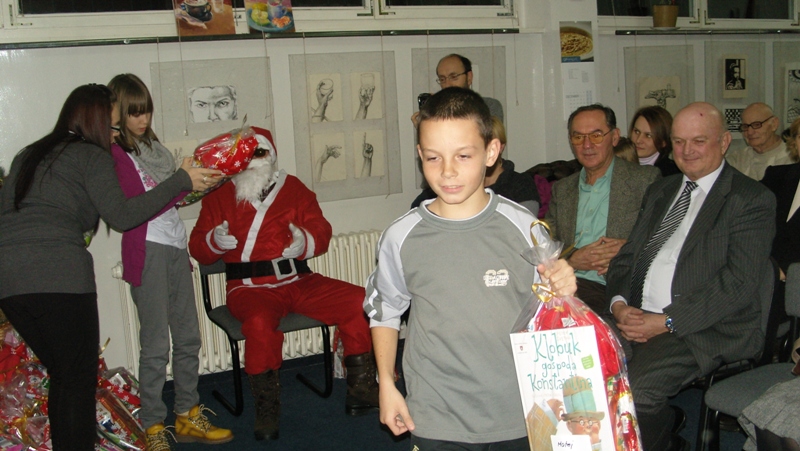 Na priredbi su učestvovali učenici dopunske nastave slovenačkog jezika, njihovi roditelji i članovi Udruženja. Oko 70 darova je bilo spremljeno - toliko djece u Banjoj Luci i Slatini pohađa dopunsku nastavu slovenačkog jezika. Nismo zaboravili ni na najmlađe, na one, koji još ne pohađaju nastavu. Pored poslastica u svakoj kesi je bila knjiga, jer želimo da djeca tokom čitanja proširuju svoj vokabular i upoznaju se sa slovenačkim jezikom.