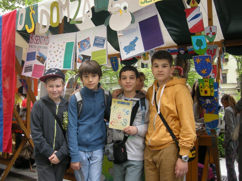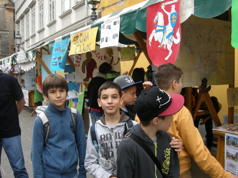 Naši učenici su posjetiocima dijelili gibanicu i štrudlu, pričali im o učenju slovenačkog jezika i o svim aktivnostima koje udružuju Slovence u Bosni i Hercegovini. Posjetila ih je i savjetnik Zavoda RS za školstvo gđa Eva Jurman. Sa velikim veseljem su išli od štanda do štanda i uz pomoć kvizova upoznavali različite države, njihov jezik, karakteristike i kulinariku.