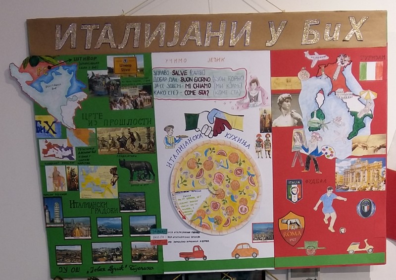 Izložba obuhvata 16 ručno rađenih kreativnih panoa, a svaki predstavlja po jednu nacionalnu manjinu kroz različite segmente - istorija, umjetnost, kultura i dr. Do kraja decembra 2015. godine, ista izložba će biti upriličena i u Ministarstvu prosvjete i kulture Republike Srpske, a povodom posjete pobjedničkih ekipa, ovog takmičenja, Banjoj Luci. Jedan od mnogobrojnih radova je i naš plakat.
