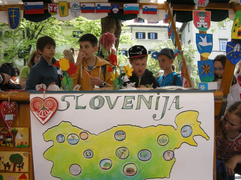Osnovci iz Ljubljane i okoline su u petak, 9. maja, na Dan Evrope na Hribarjevom brdu uz Ljubljanicu predstavljali evropske države. Pridružili su im se i učenici dopunske nastave slovenačkog jezika iz Banjaluke, Slatine, Prijedora i Teslića, koji su predstavljali Slovenijo.