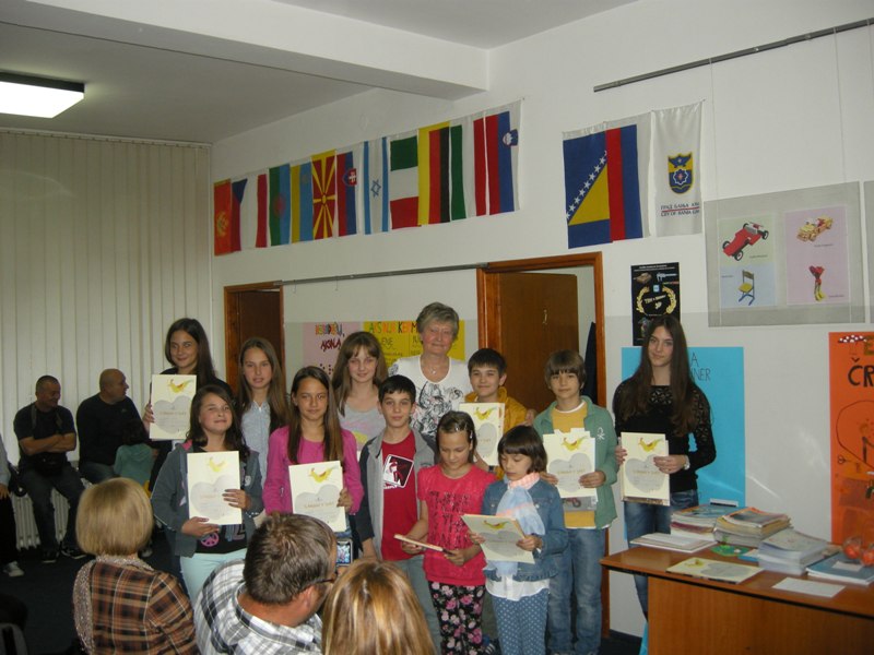 Školska godina je završila. U srijedu, 18. juna, podijelili smo potvrde za pohađanje nastave i priznanja Bralne značke Slovenije. Posjetili su nas slovenački pisac Aksinja Kermauner i direktorica Biblioteke Antona Tomaža Linharta Radovljica Božena Kolman Finžgar.